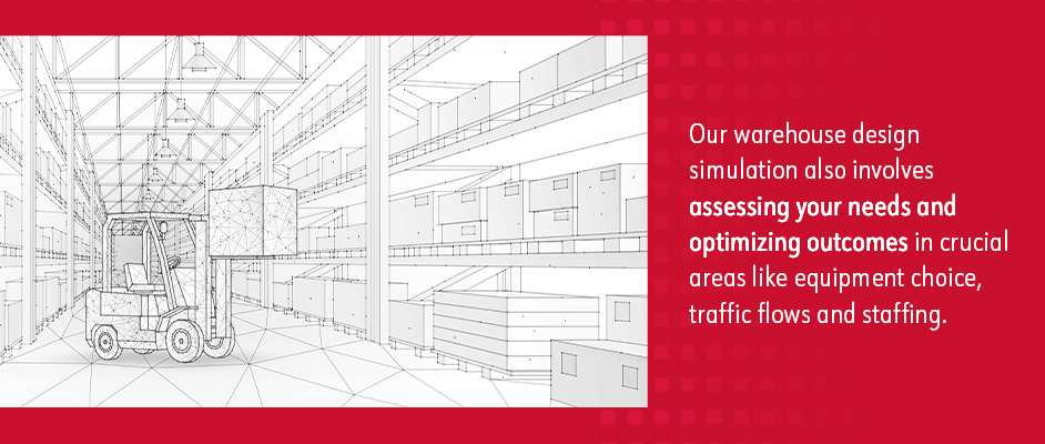 Developing the ideal warehouse racking solution involves designing the best racking systems that maximize storage capacity and enhance process efficiency. We use AutoCAD, a computer-aided design (CAD) software to generate 2D and 3D drawings of your warehouse to help visualize optimal layouts and create detailed floor plans. Our warehouse design simulation also involves assessing your needs and optimizing outcomes in crucial areas like equipment choice, traffic flows and staffing.