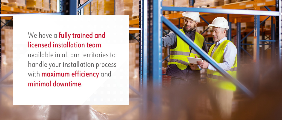 We have a fully trained and licensed installation team available in all our territories to handle your installation process with maximum efficiency and minimal downtime. Our team ensures we meet all safety procedures, and we have full insurance to protect them and your facility throughout the installation process. Accurate AutoCAD drawings guide our installations, and we can help you obtain all necessary permits.