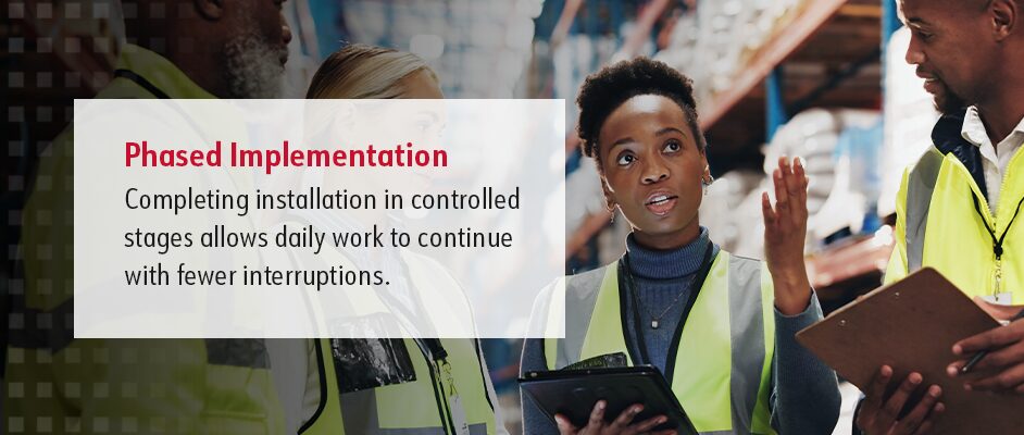 Completing installation in controlled stages allows daily work to continue with fewer interruptions. Each phase targets a defined zone while the surrounding areas remain unchanged.