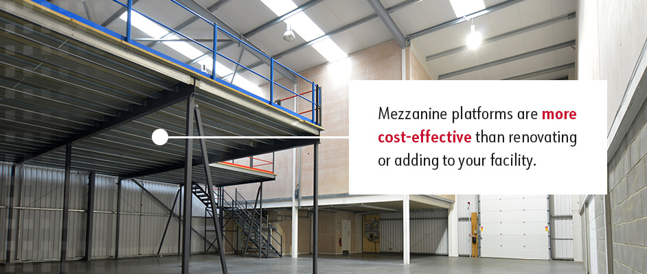 As your business expands, you may need extra space. Mezzanine platforms are more cost-effective than renovating or adding to your facility. A mezzanine system features elevated work platforms to maximize space and create a safer work environment. Our mezzanine platforms come in the following configurations: